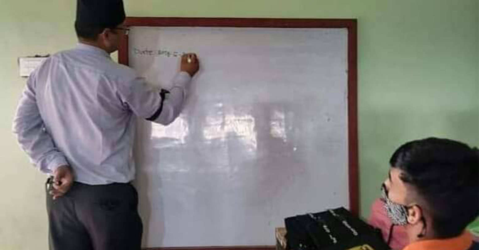 कक्षा ११ र १२ का शिक्षकले कालोपट्टी बाँधेर गरे अध्यापन