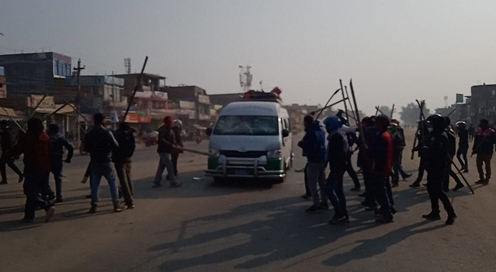 सिरहामा सीके राउतका कार्यकर्ता लाठीसहित सडकमा, दर्जनौं गाडी तोडफोड
