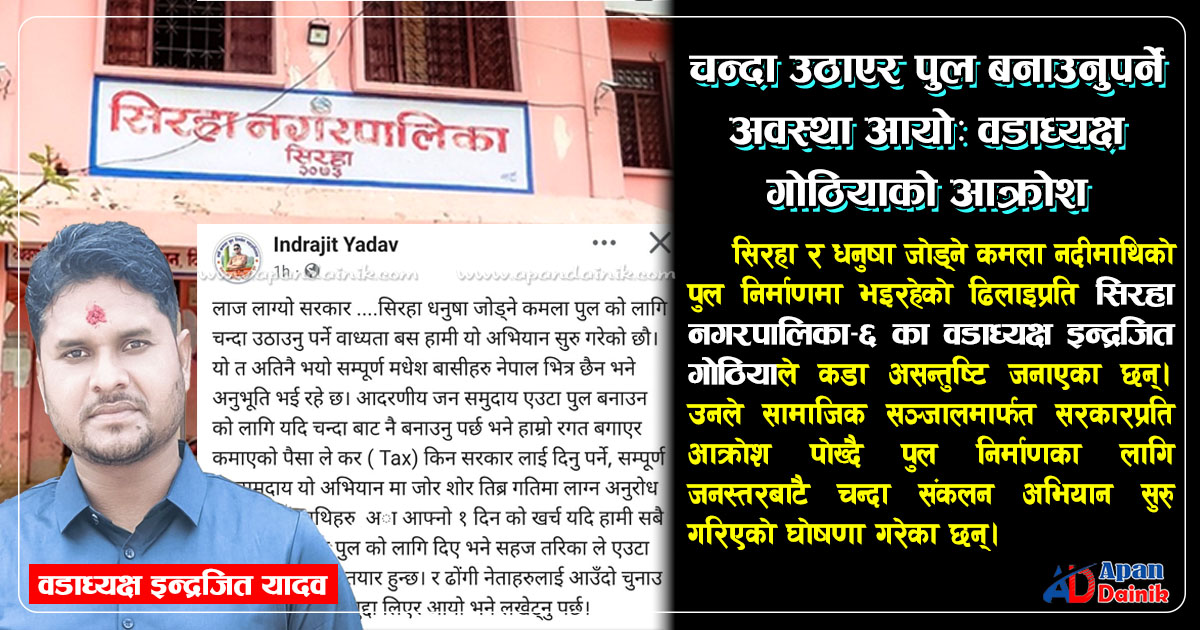 चन्दा उठाएर पुल बनाउनुपर्ने अवस्था आयो: वडाध्यक्ष गोठियाको आक्रोश