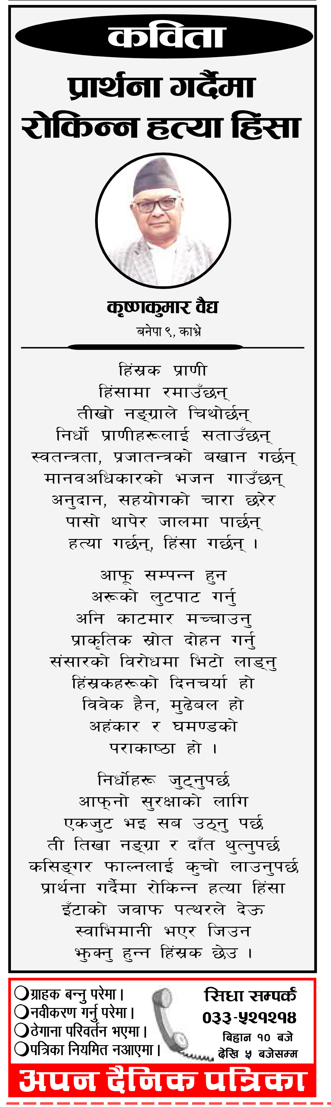 कविता : प्रार्थना गर्दैमा रोकिन्न हत्या हिंसा