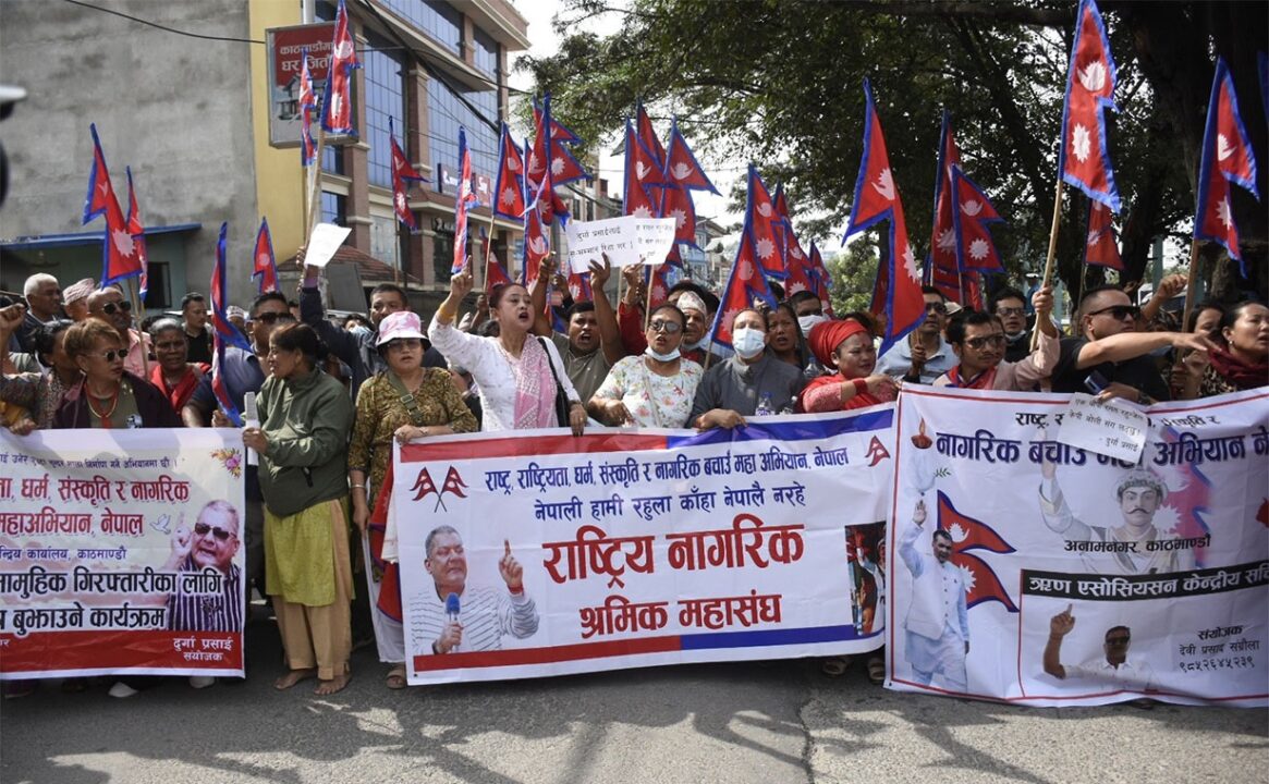 मंगलबार दिउँसो एक समूहले राष्ट्रिय झण्डासहित माइतीघरको सडकमा भेला भएर प्रदर्शन गरेका हुन् । उनीहरुले प्रसाईंलाई रिहा गर्न माग गरेका छन् ।